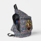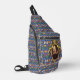 The original artwork by ZoeSPEAK on this Sling Bag features a portrait of the author William Shakespeare. The portrait is in an oval gold frame with ribbons and a crown on top. The blue background wallpaper is decorated with castles, kings' crowns and yellow and red flowers, bringing to mind the romance, tragedy and comedy of his plays and poetry.