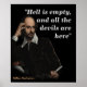 “Hell is empty, and all the devils are here”. Shakespeare line from The Tempest.