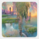 Willow and wisteria by the pond at sunset Square Sticker