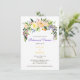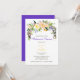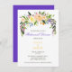 The top of this pretty wedding rehearsal dinner invitation is embellished with a colourful watercolor floral drop half wreath image. Colours used include tangerine, gold, yellow, blue, violet, green, and more. Your custom text is in medium grey, purple blue and gold at the centre. The images and text are placed on an white background. The back of the invitation is matching purple blue to add a colourful contrast. Beautiful, modern, and chic! Be sure to see the matching wedding products in our store.