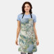 Willow Little Magnolia Wallpaper Floral Coastal artwork kitchen apron with beautiful toile jardin style print in shades of ivory, blue, and green greenery.