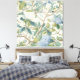 Willow Little Magnolia Wallpaper Floral Coastal artwork canvas print with beautiful toile jardin style print in shades of ivory, blue, and green greenery.
