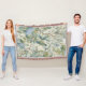 Willow Little Magnolia Wallpaper Floral Coastal throw blanket with beautiful toile jardin style print in shades of ivory, blue, and green greenery.