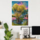 Willow tree at sunset by the pond poster