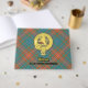 Clan Wilson crest badge surrounded by a strap and buckle over ancient tartan background. Custom front, back and spine text.