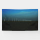 Windfarm - Photograph of the Blesdijk windfarm in the north of the Netherlands showing a row of white wind turbines against a green field and bold blue sky.