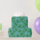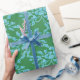 Winding Peony Woodcut in Green and Aqua Wrapping Paper