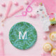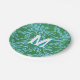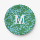 Winding Peony Woodcut in Green + Aqua Personalised Paper Plate
