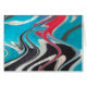 a blabk and white with red and aqua accents in a wavy abstract design.