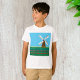 A windmill amongst yellow blue red and pink tulip flowers. This design looks really effective on this Boys T-Shirt