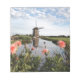 Memo notepad with a windmill and a canal with pink dahlia flowers in a landscape in Holland.