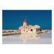 Photo print of the salt museum with a traditional windmill with a red roof and reflection in the salt pans at the salina of Mozia at the west coast of Sicily between Trapani and Marsala.