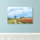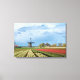 Canvas landscape print with a windmill and yellow and red tulips under a cloudy sky in the Dutch countryside on a beautiful springtime day in the Bulb Region, the Netherlands. Great decoration on your wall!