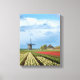 Vertical canvas landscape print with a windmill and yellow and red tulips under a cloudy sky in the Dutch countryside on a beautiful springtime day in the Bulb Region, the Netherlands.