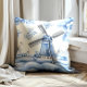 Elegant vintage windmill decorator pillow in Dutch delft blue. Contact me for assistance with customisations or to request additional matching or coordinating Zazzle products.