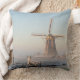 Throw pillow with a traditional dutch windmill covered in snow in a rural landscape in Aarlanderveen, the Netherlands, in winter in the warm early morning light at sunrise. A great piece of decoration on your sofa!