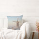 Windmill in the snow at sunrise throw pillow
