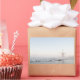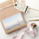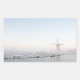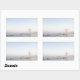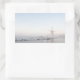 Rectangular photo sticker of a windmill in the snow next to a canal during a foggy sunrise in winter in the Netherlands