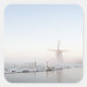 Photo sticker with a windmill in the snow next to a canal during a foggy sunrise in winter in the Netherlands