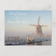 Christmas card with a traditional dutch windmill covered in snow in a rural landscape in Aarlanderveen, the Netherlands, in winter in the warm early morning light at sunrise with the text: "Merry Christmas & Happy New Year!"