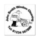 Fun window cleaning cartoon illustration shows a man with barrow and ladder. Personalize it with your choice of business name and contact number. Ideal rubber stamp for a window cleaning company or window cleaning business.