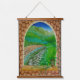 The polyester fabric displayed many wrinkles and several sharp creases throughout. At the bottom of the tapestry, I noticed a bulge in the fabric because it was not pulled tight enough before being connected to the wooden boards. It took me over an hour to spay water on the tapestry before putting it on an ironing board where I used a warm iron over a polyester cloth to remove the wrinkles and creases in the material. I was able to get out the wrinkles and creases that made that tapestry look as beautiful as its picture.