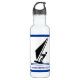Windsurfer on board black, blue windsurfing stainless steel water bottle featuring a minimalist pictogram icon of a black silhouette windsurfer and your text on white background with blue border. The modern, minimalist design makes a perfect for the windsurfer in your life.
