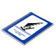 Windsurfer on board black, blue windsurfing custom gift design that features a minimalist pictogram icon of a black silhouette windsurfer and your text on white background with blue border.  This cool design is a template and it is completely customisable. Personalise it and change text with monogram, name or your message. The modern, minimalist design makes a perfect gift for the windsurfer in your life. See lots of designs at our Sports Gifts store.