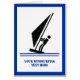 Windsurfer on board black, blue windsurfing vertical greeting card that displays a minimalist pictogram icon of a black silhouette windsurfer and your text on white background with blue border.Personalise it and change text with monogram, name or your message.