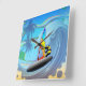 Windsurfer playing with wind and the Perfect Ocean wave. Cowabunga Dude! Original Vector Graphic Art under BluedarkArt Copyright.