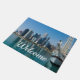 Customisable welcome doormat featuring a morning fine art photo of skyscrapers in Chicago Illinois along Lake Michigan next to a sailboat. Chicago IL is the 3rd largest city in the US and is famed for its bold architecture. Looking for more prints or products? Feel free to visit my store: http://www.zazzle.com/timelessmomentsphtgy