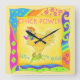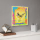 Wine a Lttle Chick Power Yellow Whimsy Square Wall Clock