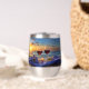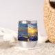 An image of wine on the beach at sunset, featuring a beautiful wine tumbler to keep your drink cool while enjoying the outdoors. A lovely and thoughtful wine gift.