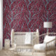 Wine and Cadet Grey Tree Branches Pattern Wallpaper