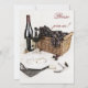 Wine and cheese dinner celebration invitation featuring an elegant yet casual setting with wine bottle, wine glass, a plate with cheese, corkscrew and grapes.