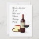 Wine and cheese tasting party design. This can be for a wine tasting party or just a Wine and Cheese Party. Just fill in your information as needed in the spaces provided. Features a bottle of red wine, a wine glass with red wine, and a plate of cheese on the front. The back has a wine glass and cork. Design is both elegant or modern to suit any situation. Any wording can be changed, or deleted to suit your needs. See discounts for bulk purchases.