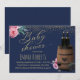 Wine Barrel Navy Gold Confetti Floral Baby Shower Invitation