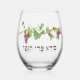 Wine Blessing Hebrew Borei P'ri Hagafen Kiddush Stemless Wine Glass