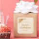A label to use for a save the date wine bottle gift, with a vintage illustration of grapes and grape vine in the top left in sepia with a hint of colour on a creamy beige background, and with ornamental corners top left and bottom right. The illustration is by Ellen Clapsaddle, a well known 19th century illustrator, and is taken from a book of that era.
