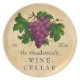 The text reads [Your Name's] Wine Cellar, established [year]. All text can be changed either through the templates or by customising to adjust fonts and font size. Perfect for the wine connoisseur, any fan of viticulture, or any owner of a winery or vineyard, this stylish plate design will complete your cellar decor.