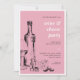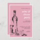 Invite guests for a wine and cheese celebration with this casual chic invitation. Design features black and white drawings of a bottle of wine alongside a glass, cheese and olives.