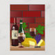 Lovely scene of two glasses full of red wine, and two wine bottles, one red and one white (green). A background of a brick wall and purple grapes and green leaves, along with a wheel of cheese, sliced open. This elegant vineyard, winery or wine making scene makes a great customisable or personalised gift for the wine shop owner, wine tasting party or just the lady who loves to wine and dine. All Designs Copyright © 2012 www.CuteComfy.com