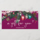 Modern logo gift certificate with festive Christmas lights green pine branches snow with cute illustration of glitter Christmas ball ornament, green watercolor pine branches, mistletoe, pine cones, string fairy lights on editable wine background.. Get ready for the shopping season and Christmas. Perfect gift for anyone! Add your logo.