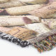 A quality printed throw has its advantages. This is a much finer weave throw than its loopier cousins, and though lighter, it is worth the investment for custom room accessorizing. The back is much prettier than the typical brown, and the fringe on the long sides very vivid, the selvage nicely done. Before photographing, I washed the throw in cold water, delicate, with a thicker woven throw the same size. On tumble dry low, this throw was dry in half the time as the other. This is a very practical quality if you use throws for furniture covers or to wrap up in frequently. The sleekness of the fabric makes it a great layer for accenting or protecting without the feeling of sitting on too much stuff. Perfect for napping or when you feel a light chill coming on. The color printing is beautiful and on this fabric, matched the design and color of my Photoshop image. This is an advantage for blending room fabrics and colors. The fringe on the short sides prints the colors from the design image and therefore varies from the side fringe. I streaked a white fractal line through the plaid pattern to give the illusion of weaving. This printed as crisp as an illusory thread, and put some white in the short side fringe, showing another advantage of print vs loomed- for artistic purposes, line lines, detail, and color integrity can be planned and preserved. My loomed throws have color limitations and more of a needlepoint texture. Print throws reproduce an exact image. The throw felt a little stiff straight out of the package, but this went away in the first delicate wash. Of course I searched the wash water for ink or bleeding and there was none.