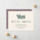 Share your new address with these rustic chic, wine country inspired moving announcements. Off white cards feature hunter green typography with a hand drawn style illustration of a vineyard home at the top. "We've Moved" appears beneath with your name(s) and new address. Cards reverse to a botanical leaf and vine pattern in ivory and plum wine.