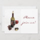Wine and cheese dinner celebration invitation featuring an elegant yet casual setting with wine bottle, wine glass, figs, and grapes.