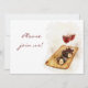 Wine and cheese dinner celebration invitation featuring an elegant yet casual setting with wine bottle, wine glass, figs, and grapes.