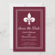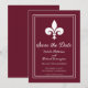 Elegant and simple Wedding save the date invite featuring a fleur de lis against a wine background. This design is a unique choice for announcing a modern wedding. Easy to customise with your wedding details. Click "Customise It" to find more personalisation options.