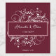 Personalise a unique wine label for your wedding reception with a Wine Flourish Wedding Wine Label. Wine Label design features an elegant leafy flourish with matching coloured background. Personalise with the groom and bride's names along with the wedding date. Additional wedding stationery available with this design as well.