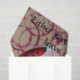 Tissue paper with image of a glass of wine against glass rim wine stains and a quote by Rumi.